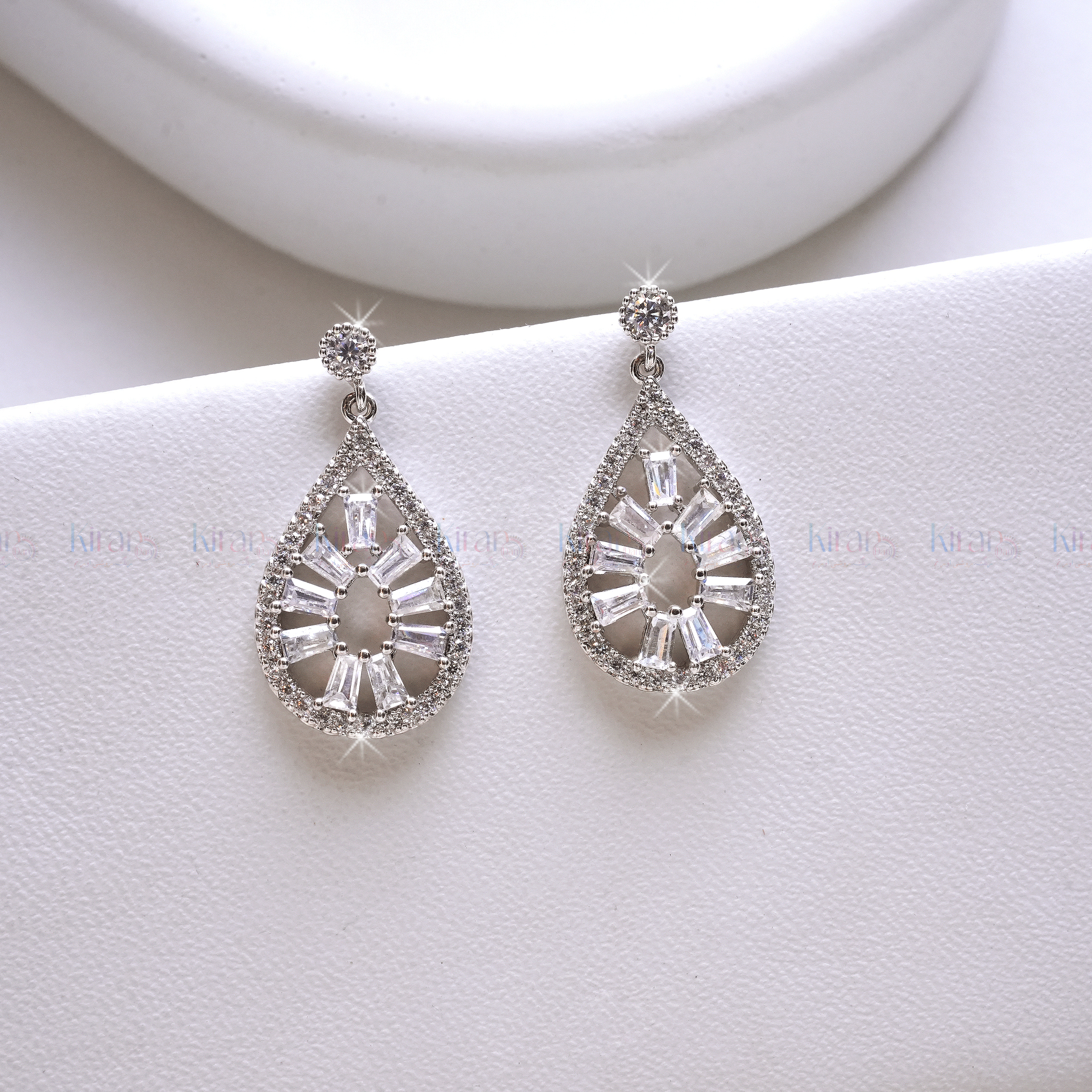 • Alloy based earrings in silver plating enhanced with prominent crystal stones.