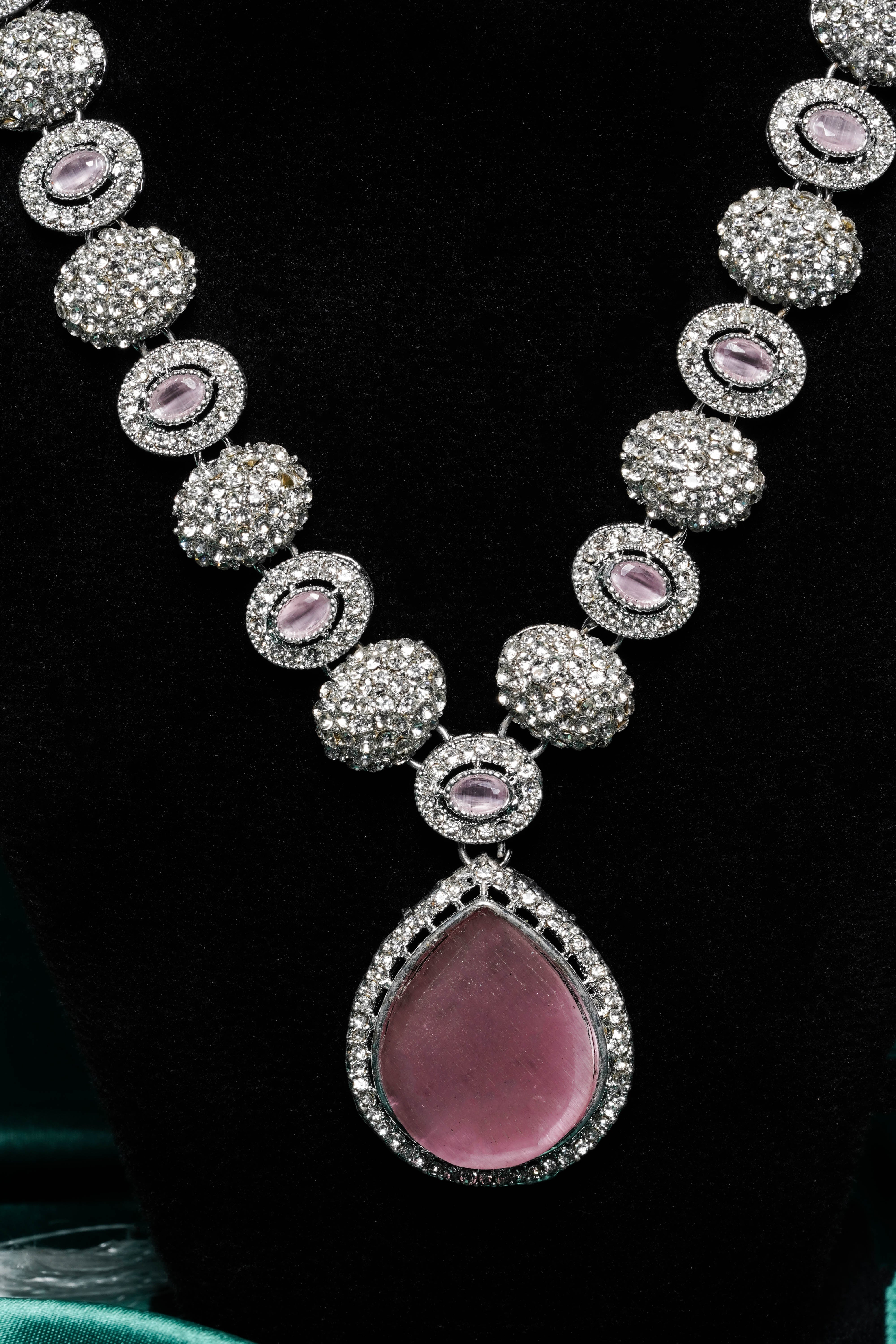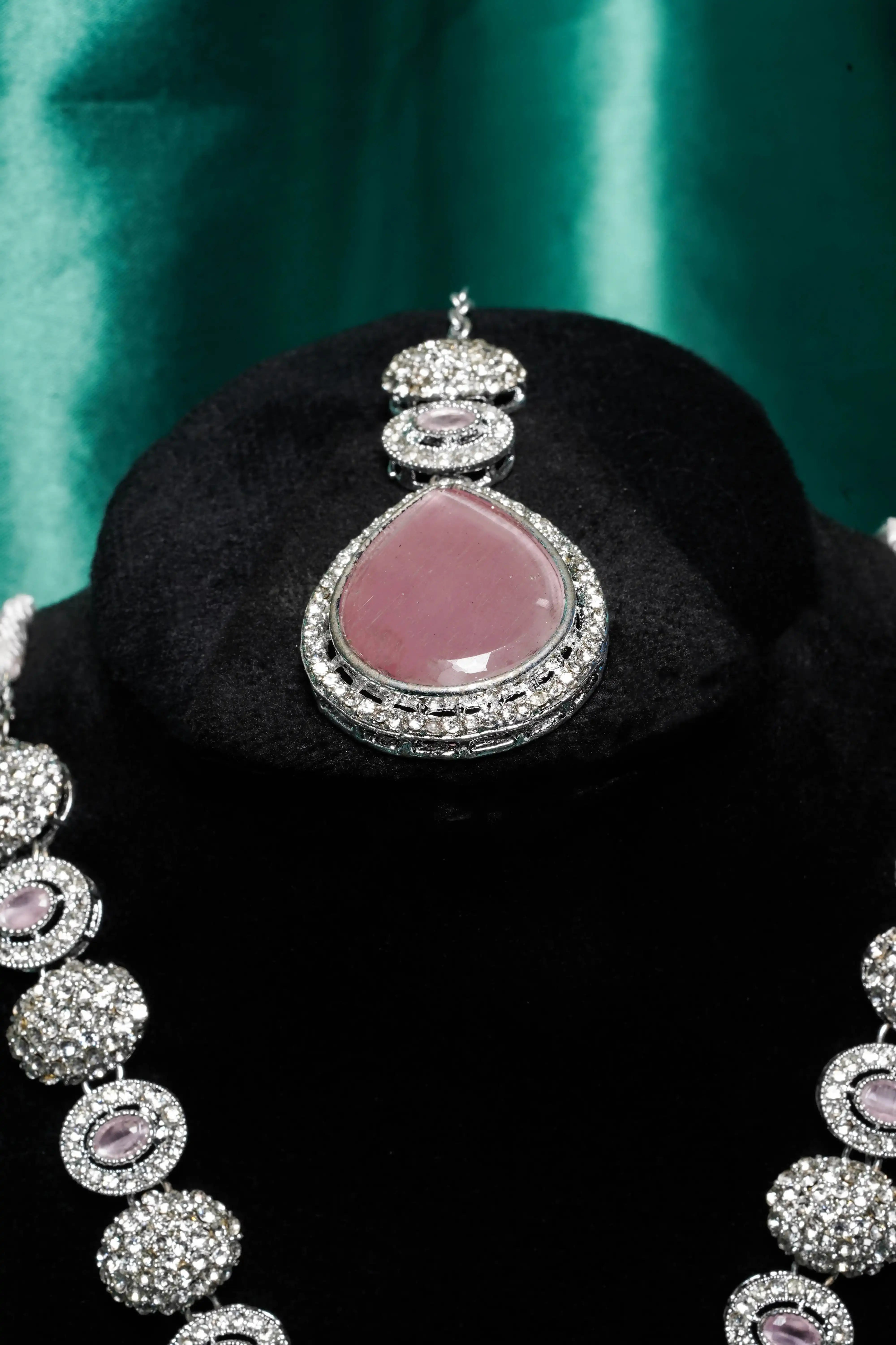 Elevate your elegance with the Blush Frost Necklace Set, a luxurious fusion of icy brilliance and soft rose hues. This exquisite set is designed for the woman who adores grace, shimmer, and timeless beauty. A celebration of sophistication, this masterpiece brings together meticulous detailing and bold femininity in perfect harmony.