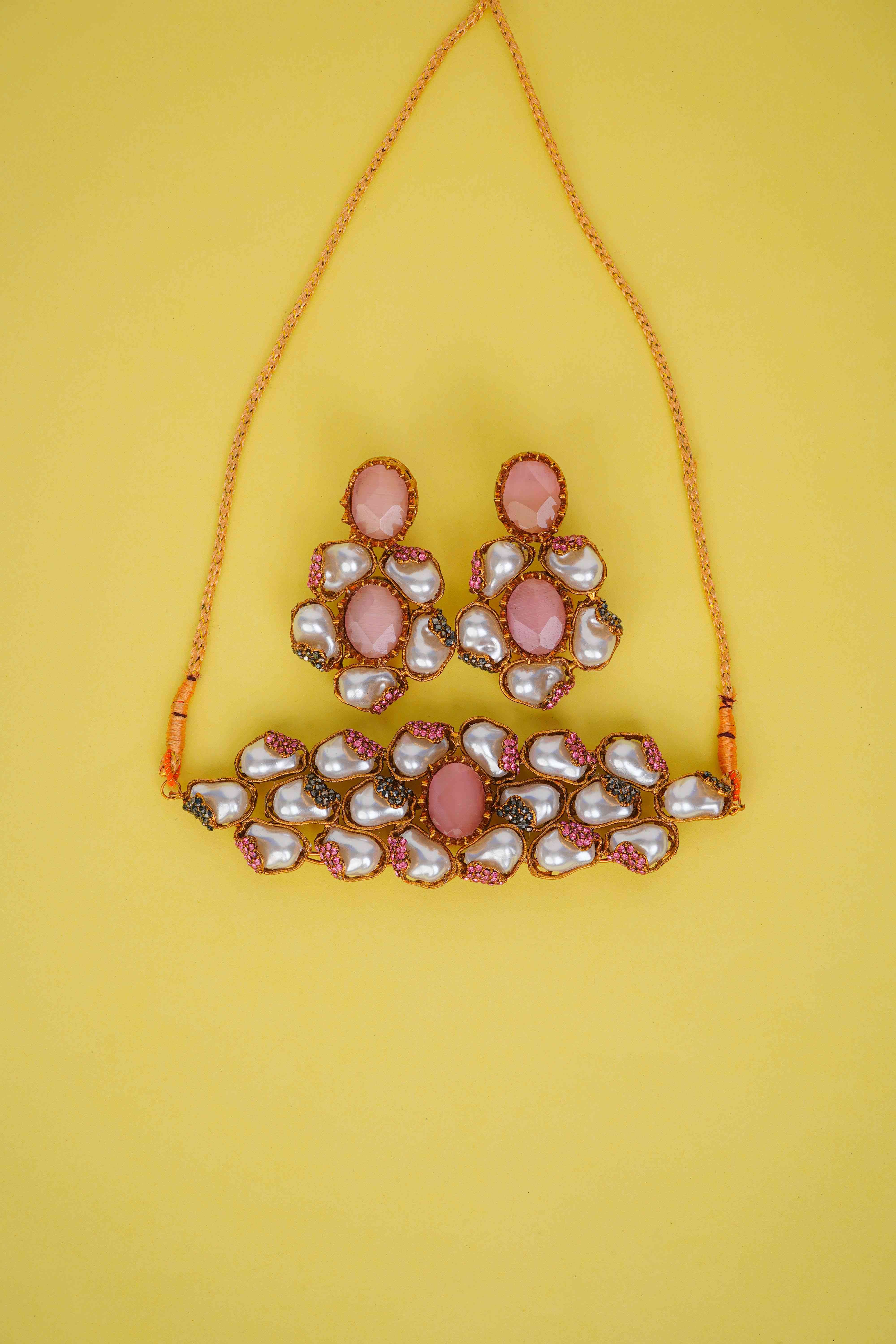 Add a touch of sophistication and regal charm to your ensemble with our Blush Pearl Bloom Necklace Set. This beautifully handcrafted jewelry piece blends timeless elegance with a modern aesthetic, making it perfect for festive occasions, weddings, or any special celebration.