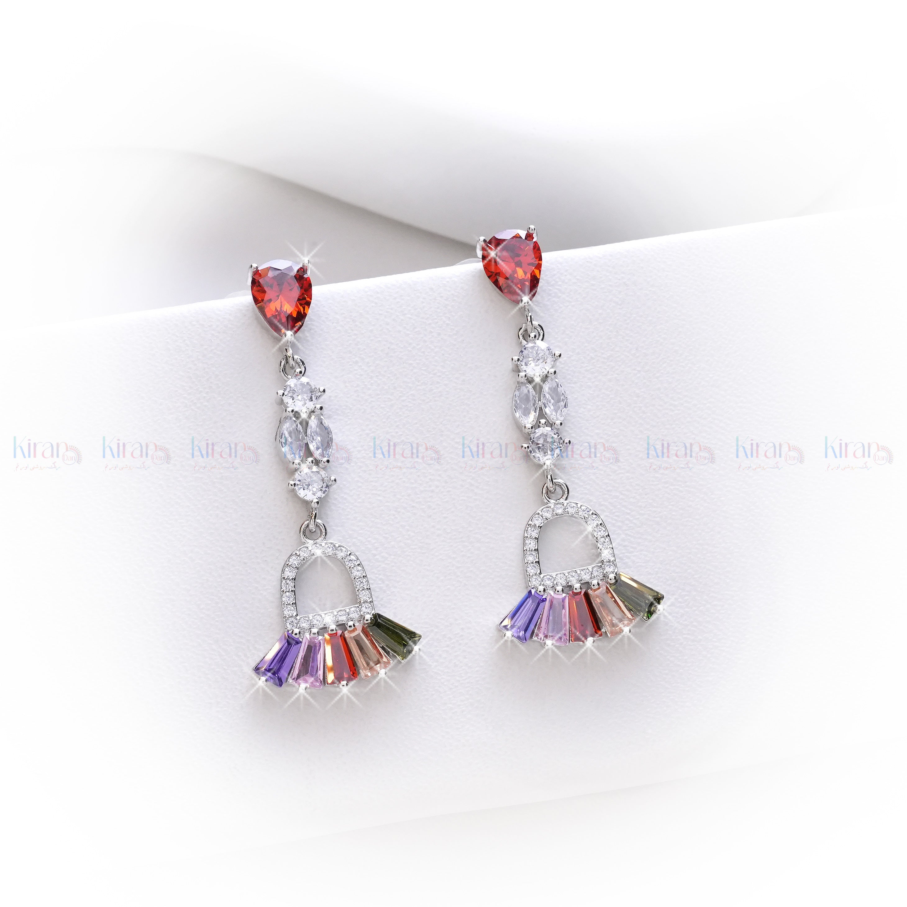 Add a pop of joy to your look with our Carnival Bloom Drops—a radiant mix of fiery red, lilac, emerald, and sunset tones set in a fan-like sparkle. Designed for women who love playful elegance, these earrings dance with light and energy, making them the perfect mood-lifter for every outfit.