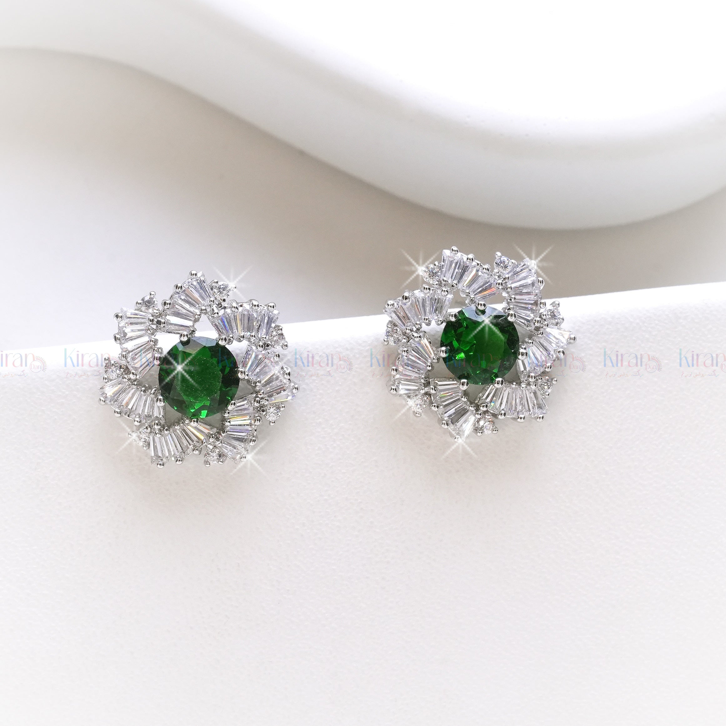 Add a touch of luxury and elegance to your collection with our Emerald Bloom Earrings. Featuring a stunning Emerald central stone, encircled by brilliant baguette-cut zircons, this exquisite design captures the essence of timeless sophistication. Set in a high-quality silver-toned metal, these earrings sparkle with every movement, making them a perfect statement piece for any occasion.