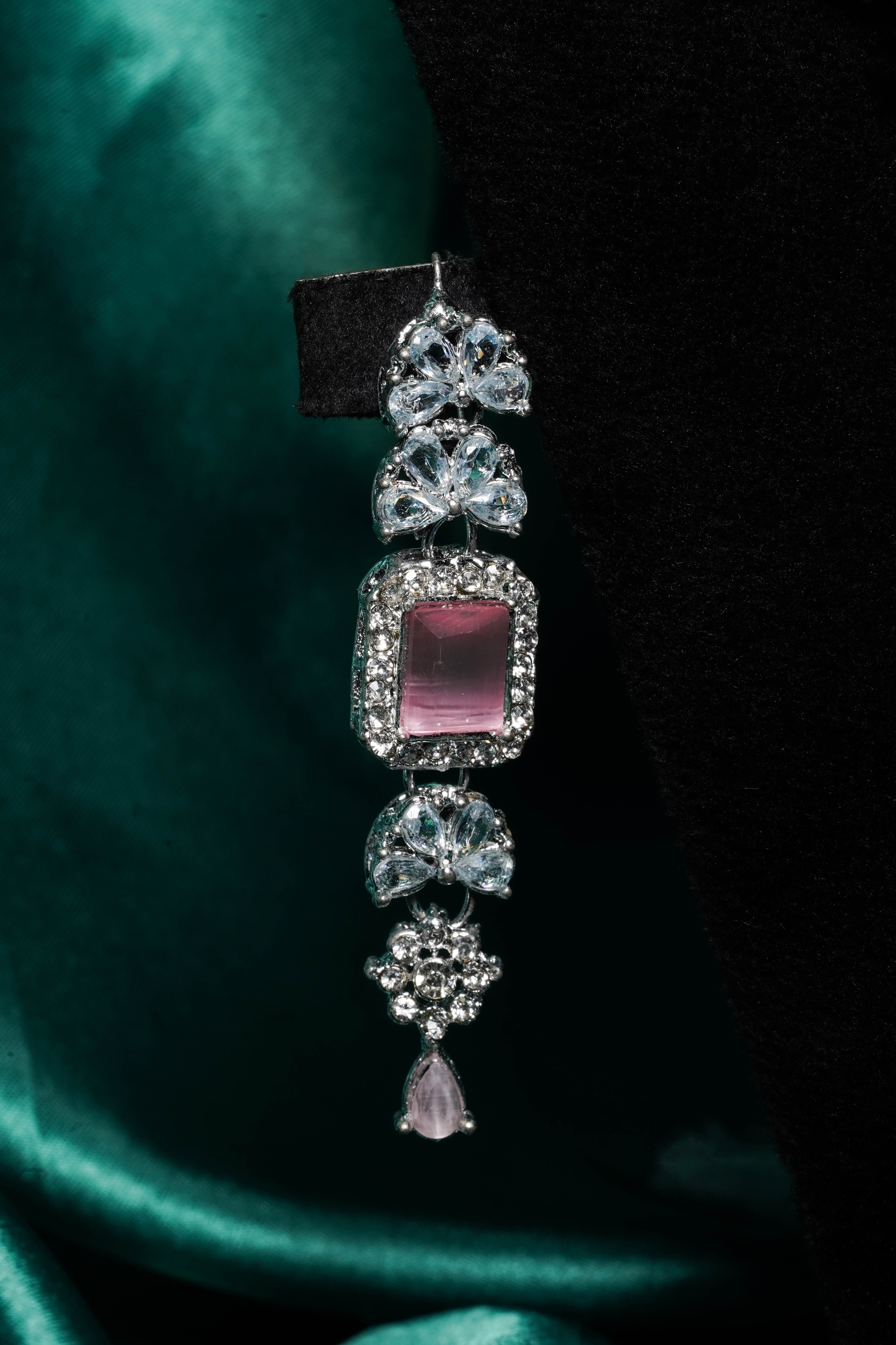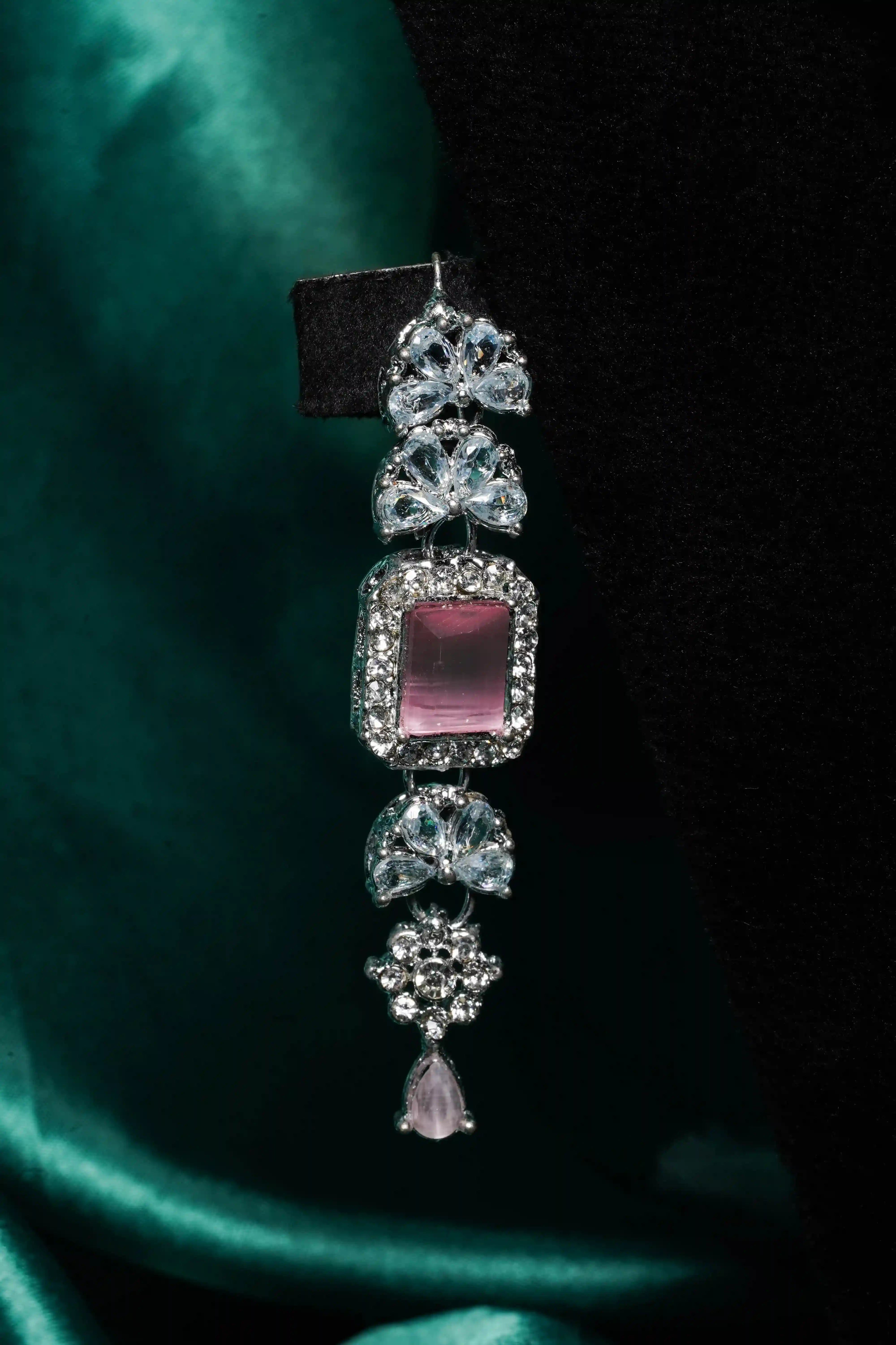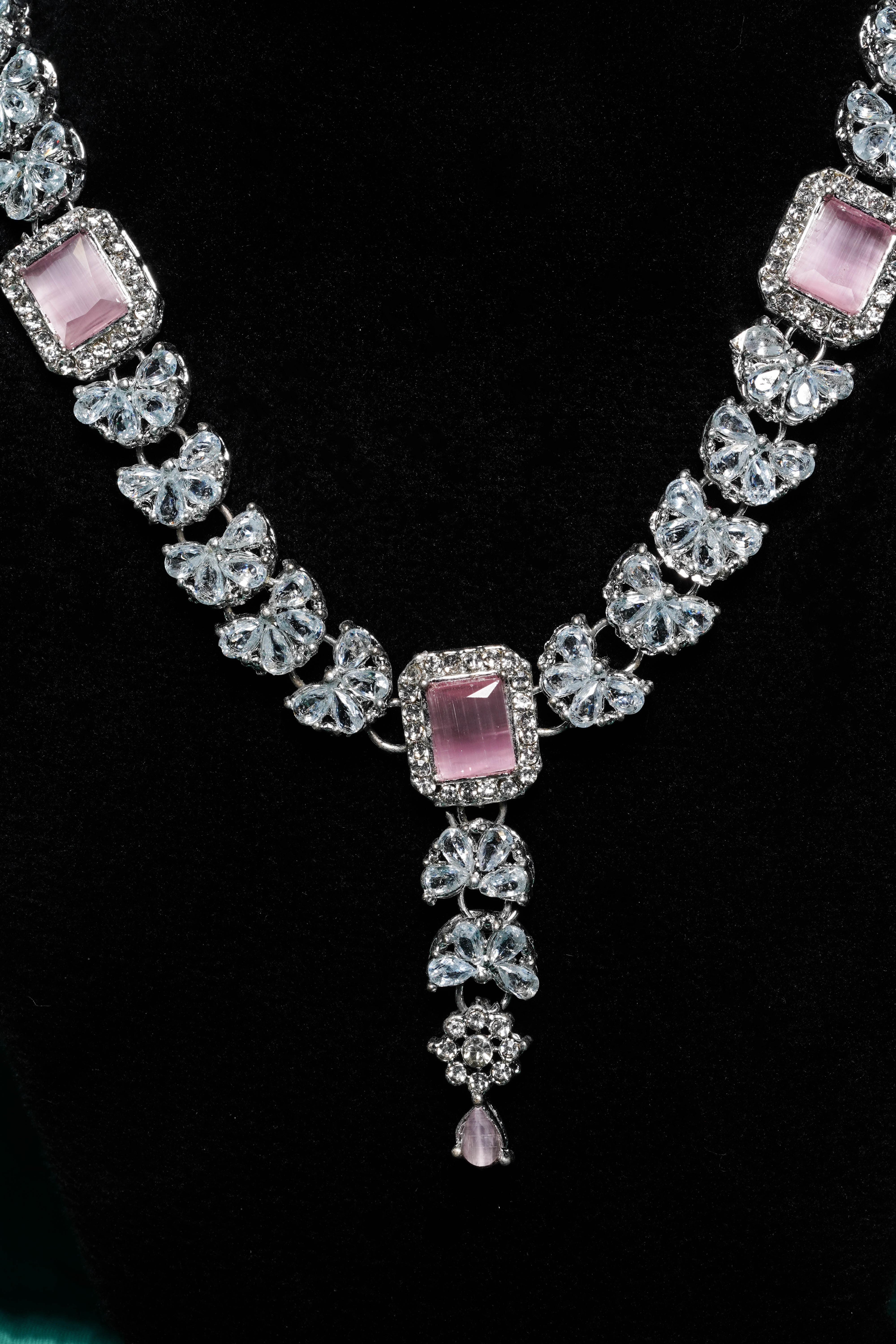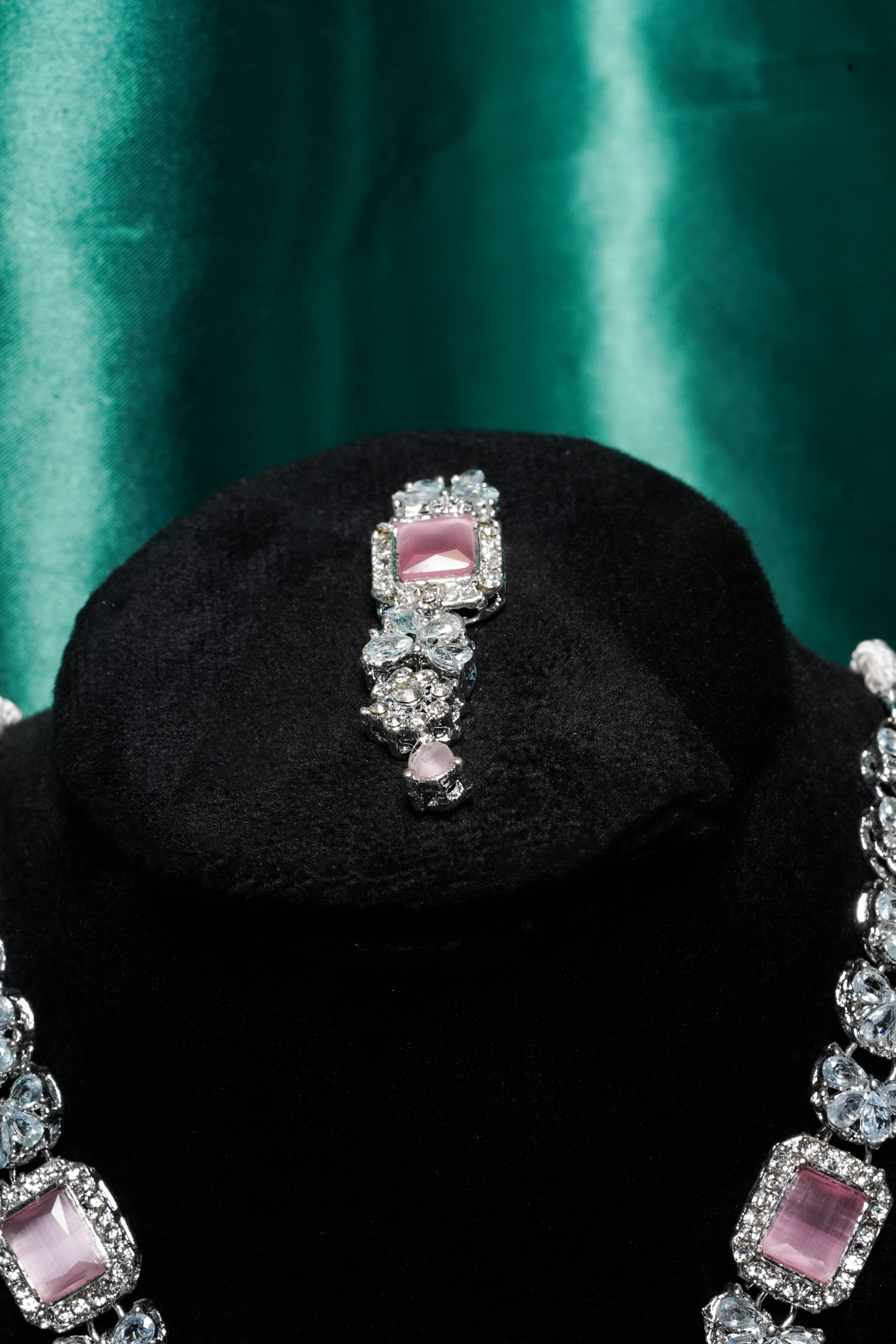 Bring grace and radiance to every occasion with the Frosted Lilac Necklace Set, a stunning union of icy brilliance and soft pastel hues. With its delicate blend of square-cut lavender gems and dazzling white stones, this set is the perfect statement of refined femininity and regal charm.