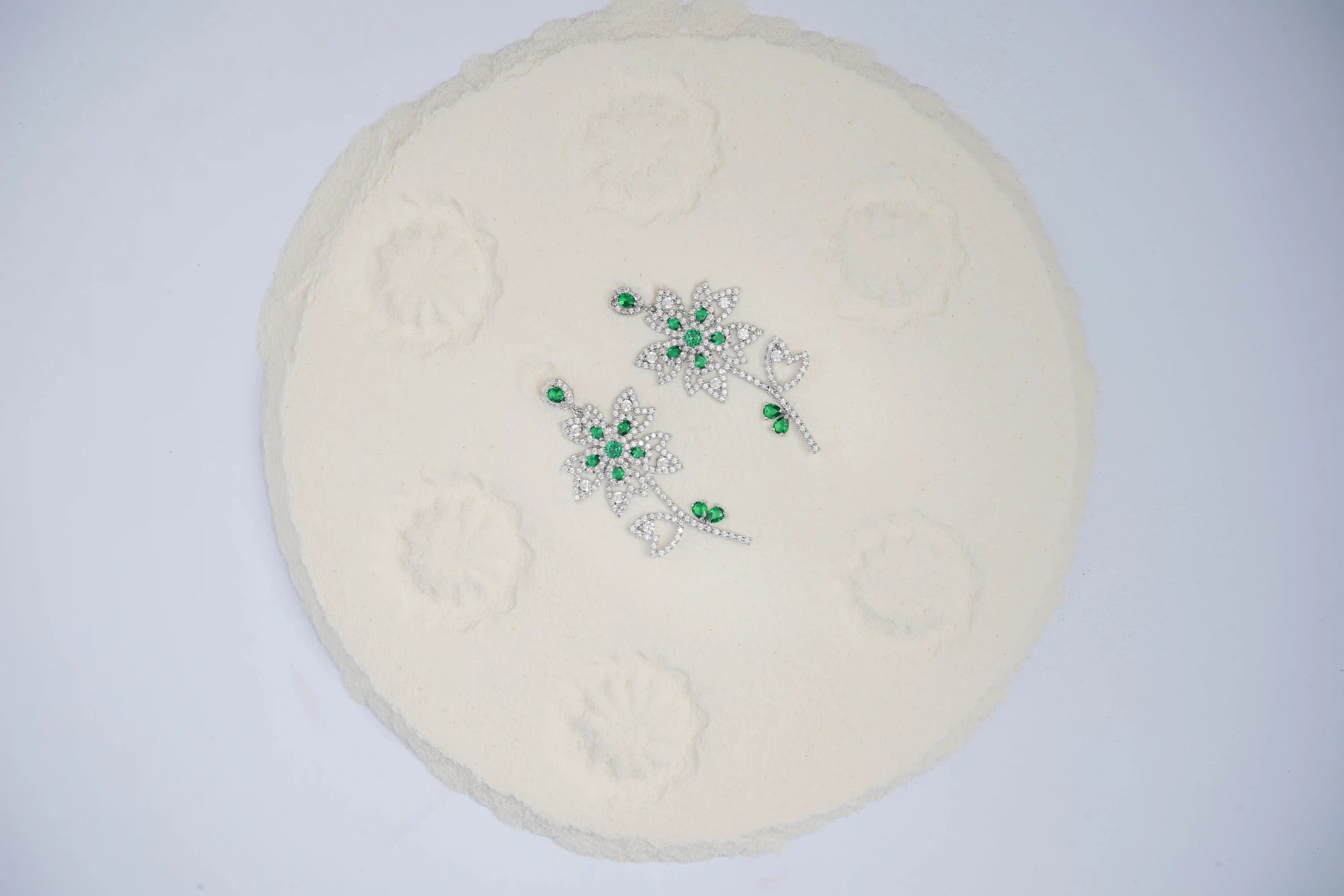 Each petal is delicately encrusted with fine-cut crystals, forming a mesmerizing cascade of light and luxury. Their lightweight yet grand design makes them perfect for festive occasions, weddings, and elegant soirées — where you want your style to speak of grace and glamour.