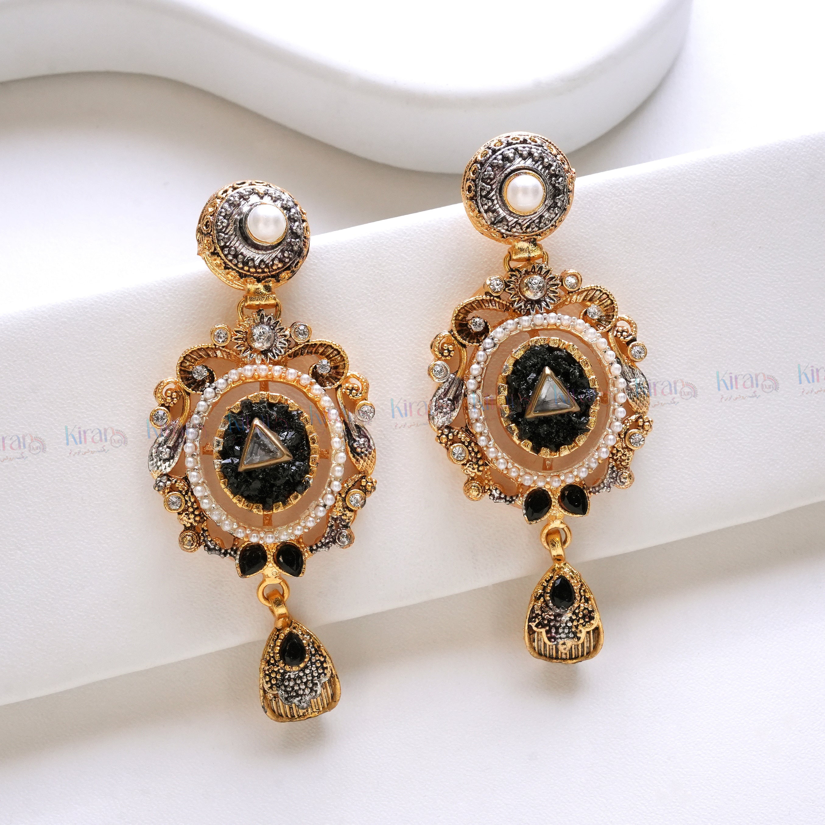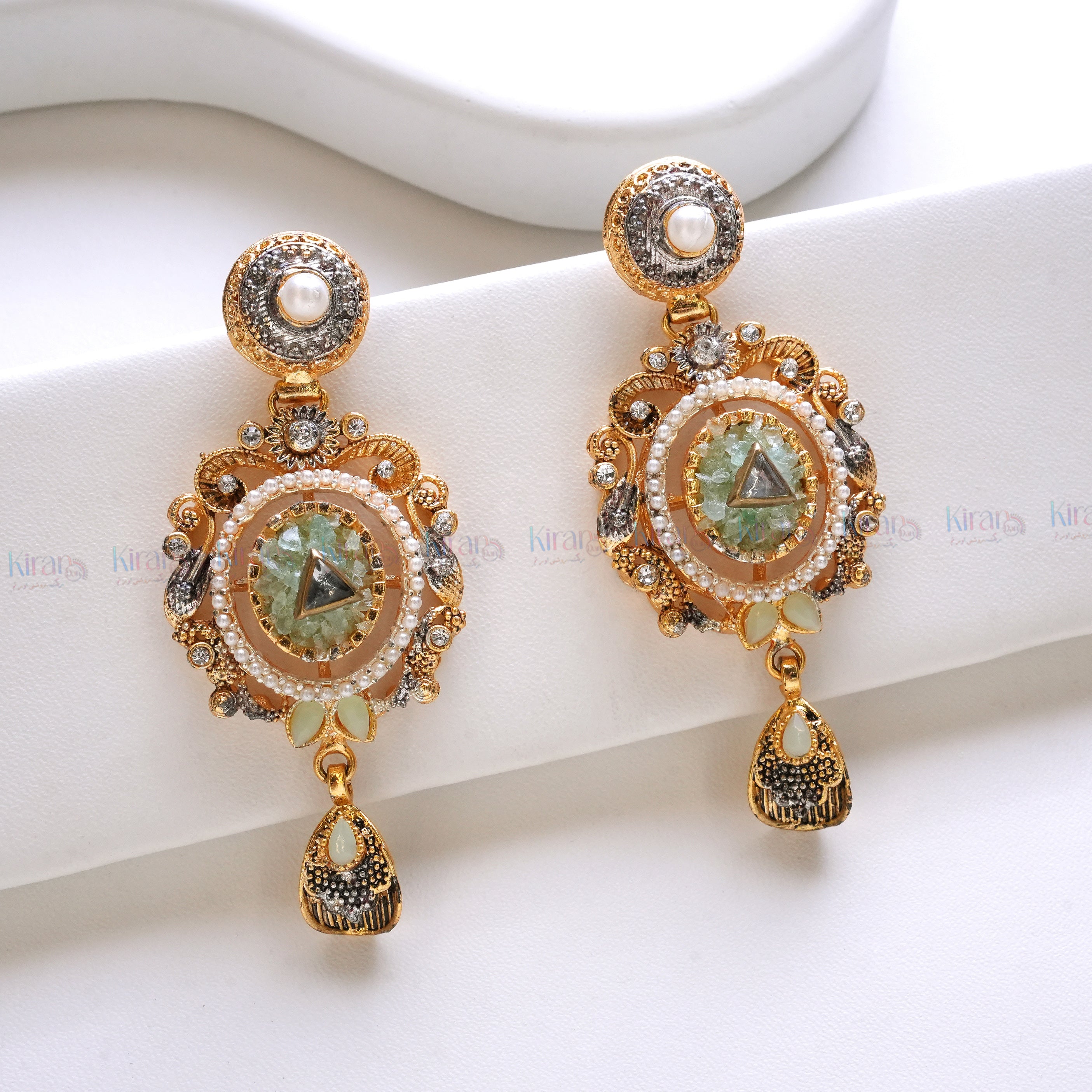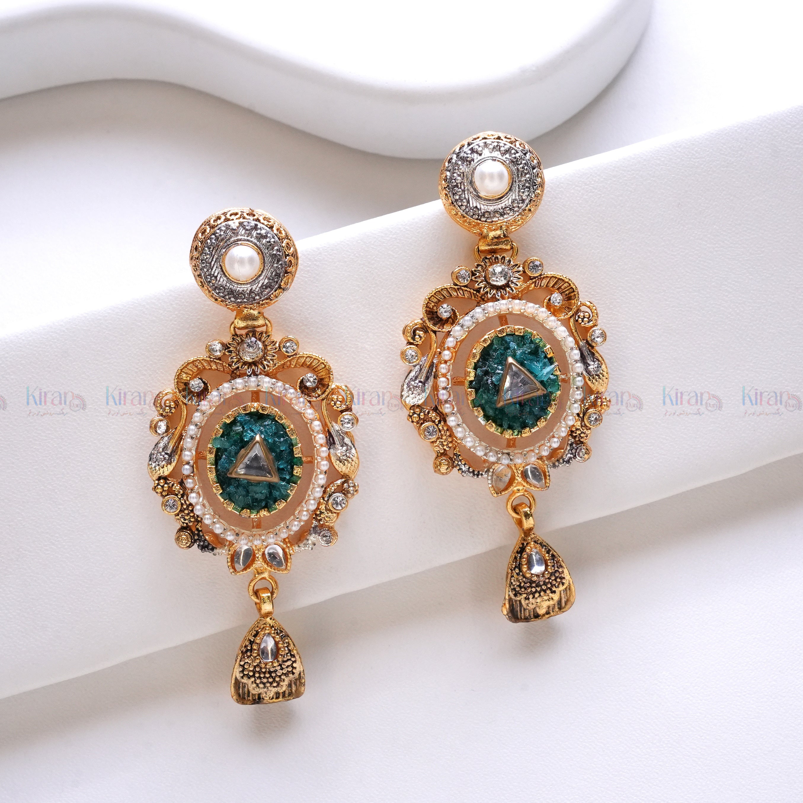 A celebration of Pakistani craftsmanship, where hand-selected gemstones and luminous freshwater pearls come together in a masterpiece of elegance. Meticulously handcrafted by skilled artisans, each pair reflects the rich heritage and artistry of Pakistan. Set in silver-plated metal, these earrings exude timeless sophistication, perfect for both grand occasions and everyday refinement. Proudly made in Pakistan, presented in an exquisite signature box for an elevated gifting experience.