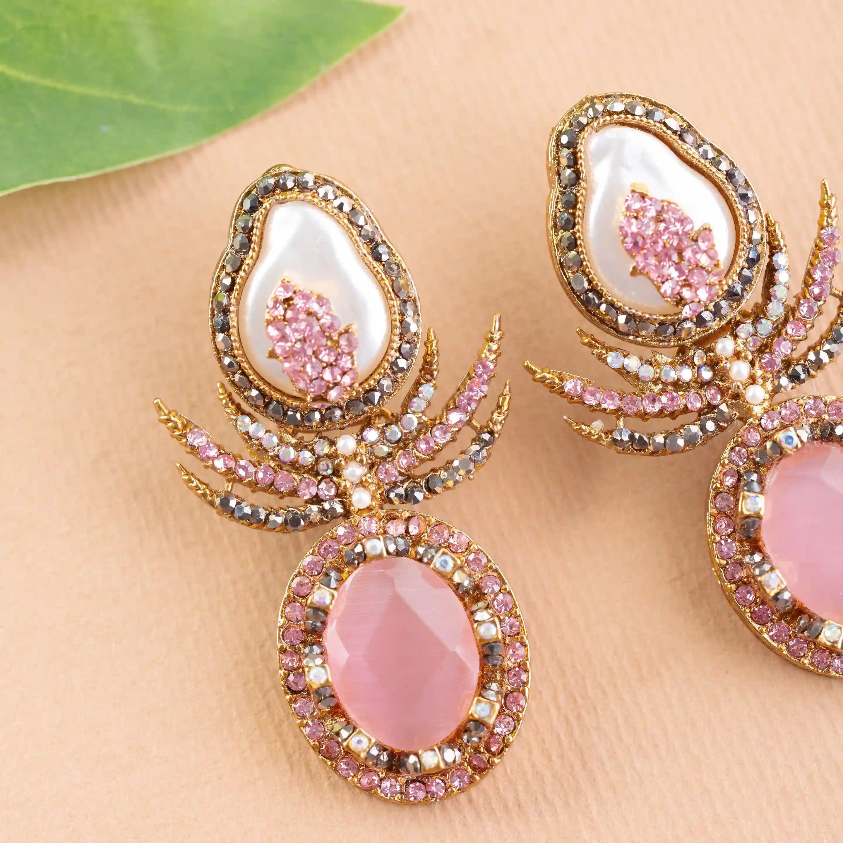 • Pearl Detailing: The earrings showcase lustrous, mother-of-pearl-style inlays, adding a classic and graceful touch to the upper section.