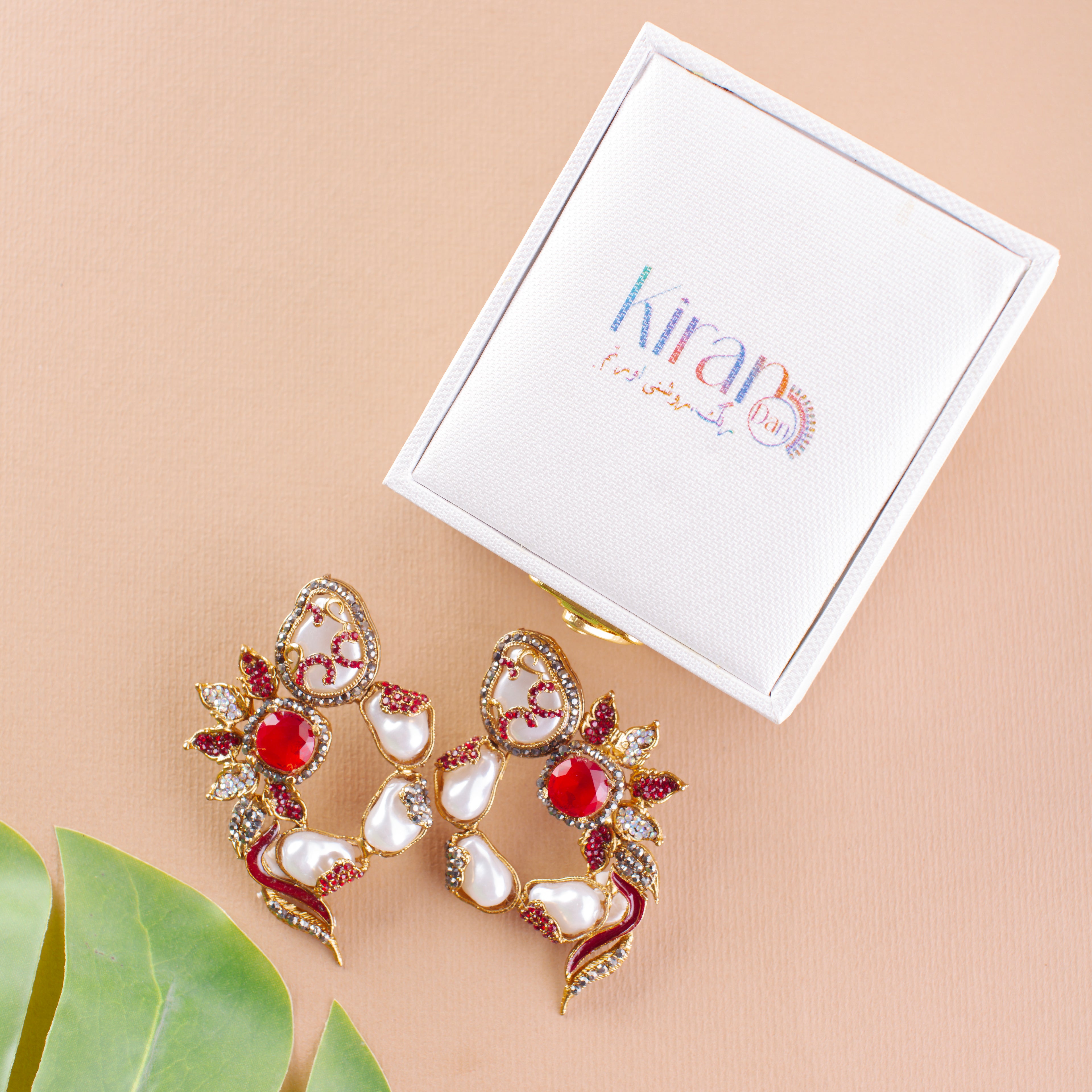 The Pearl Ember earrings are a striking blend of regal artistry and contemporary elegance, designed to resemble a crescent drape adorned with royal elements. Perfect for festive occasions and statement styling, these earrings merge traditional motifs with a modern, fluid silhouette.