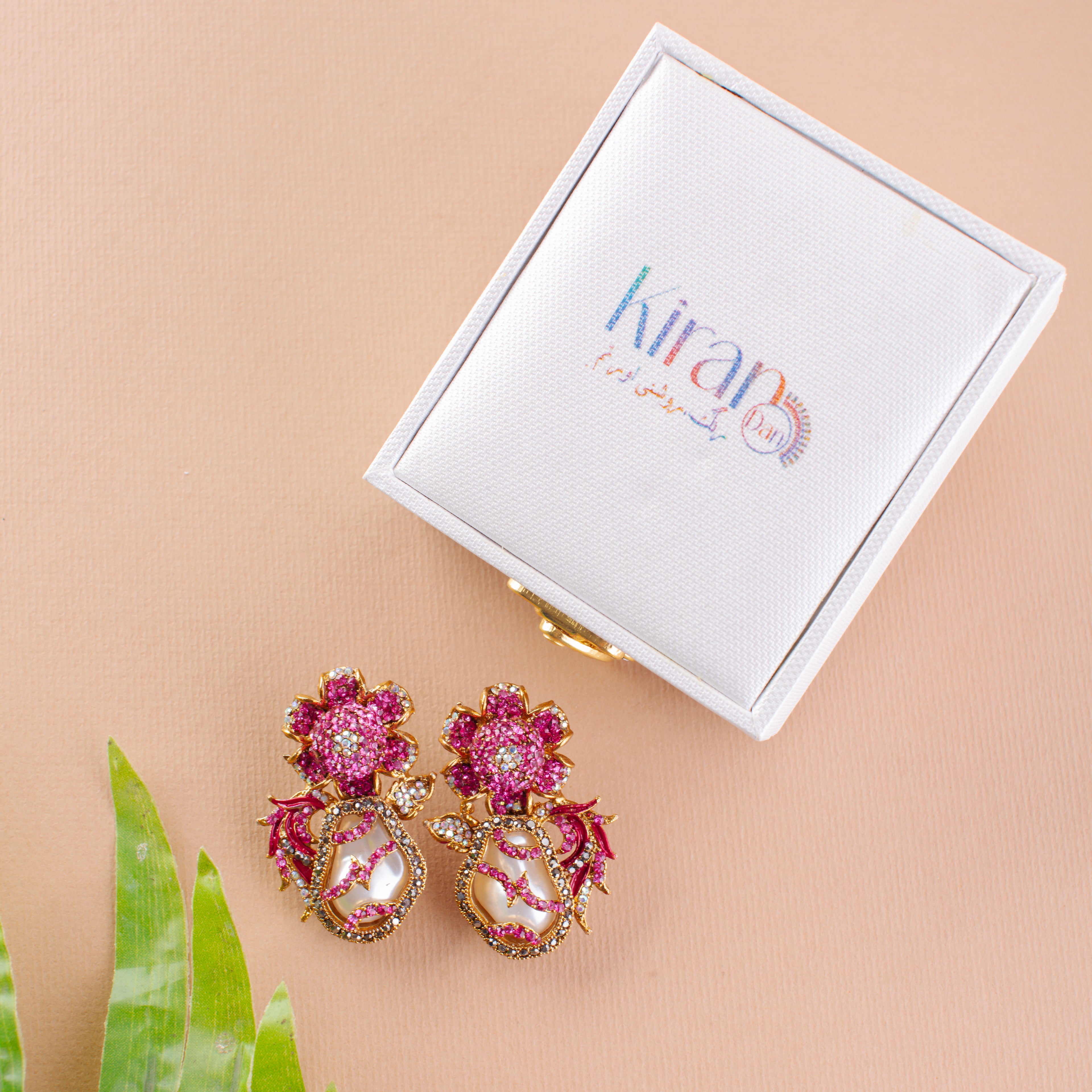 The Rosy Bloom earrings radiate romantic charm and timeless floral elegance. Perfectly balancing opulence with intricate detailing, these earrings feature a vivid rose motif that gracefully cascades into pearl-draped luxury. Ideal for bridal events, festive occasions, or heritage celebrations, they are crafted to enchant.