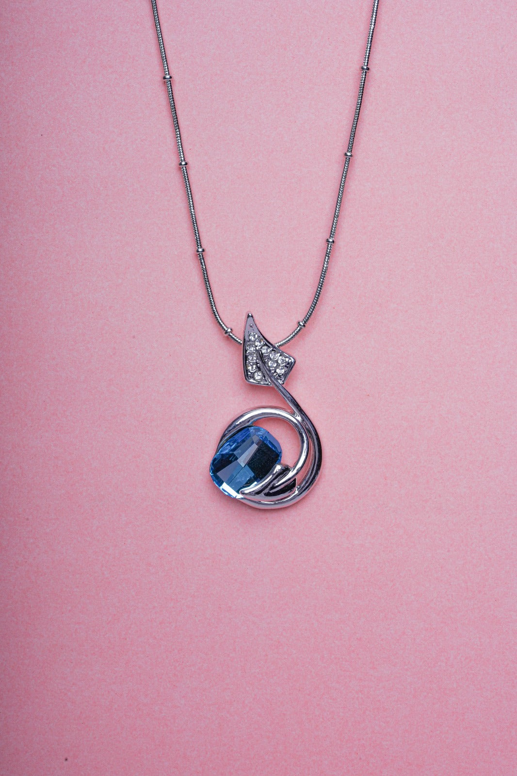 This pendant embodies grace and flow, with a deep blue gemstone nestled inside an elegant silver swirl that symbolizes movement and continuity. A delicate touch of sparkling crystals adds a dash of brilliance, making this piece both modern and timeless. It’s a pendant that captures the beauty of simplicity and the calm energy of the ocean.