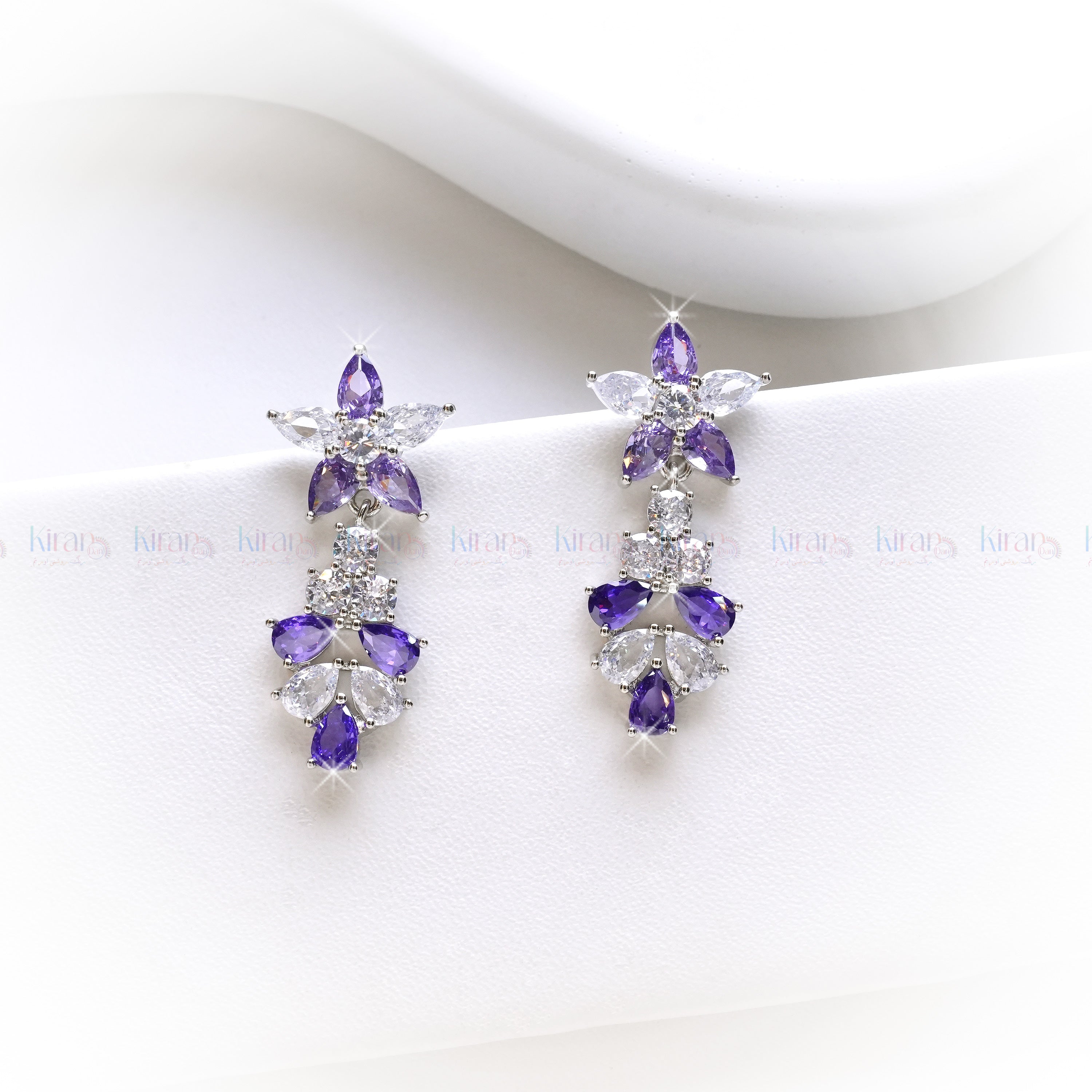 Crafted with precision on a base of pure Copper and Silver 925, these statement earrings bloom with blush purple marquise petals and shimmering white zircon crystals. The cascading design flows like a waterfall of grace, flattering every face shape with its lightweight luxury and high-shine sparkle.