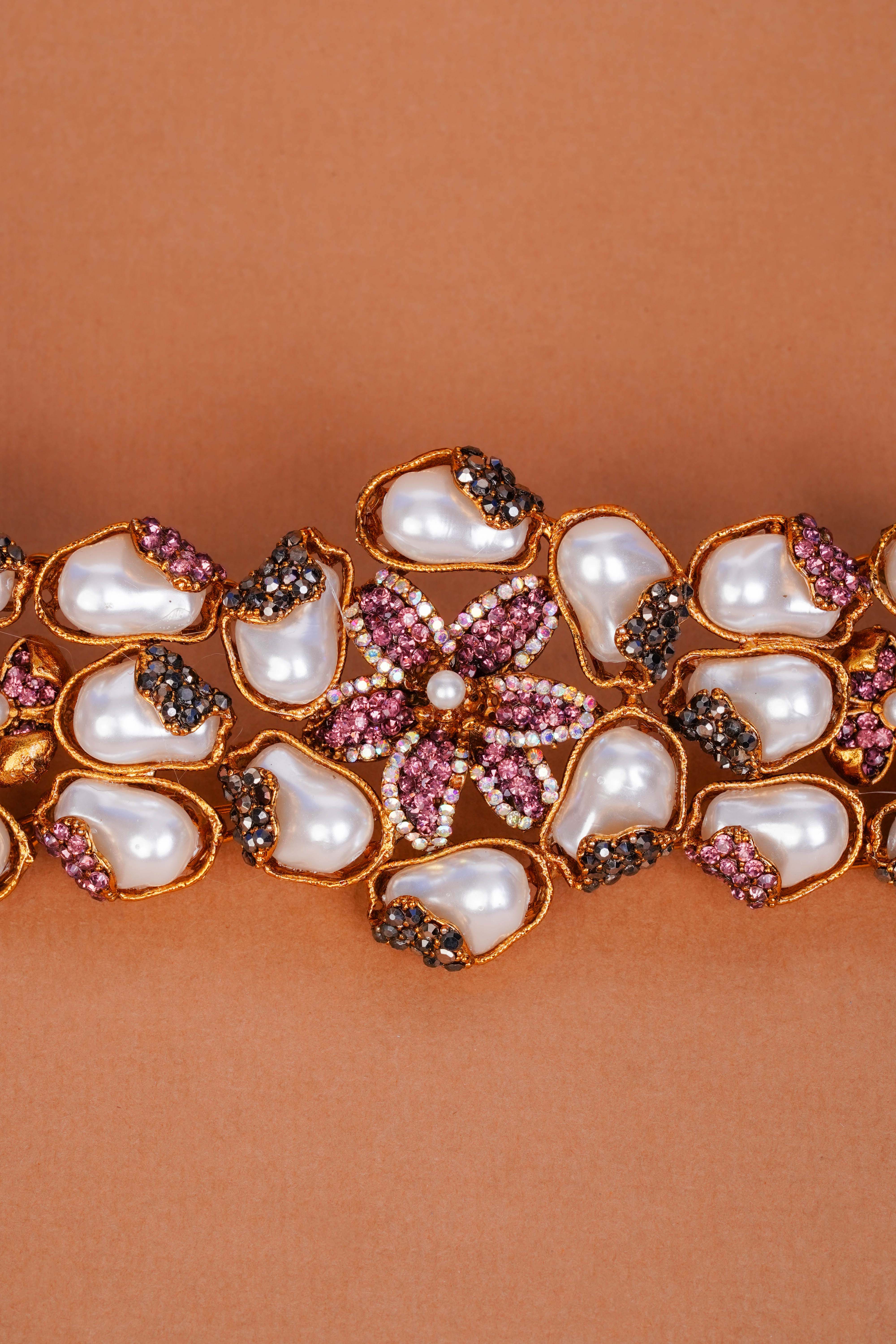 Centerpiece Flower Motif: The central floral design showcases radiant pink crystal petals, encircled with iridescent accents and a delicate pearl at the center — evoking natural beauty and festive radiance.