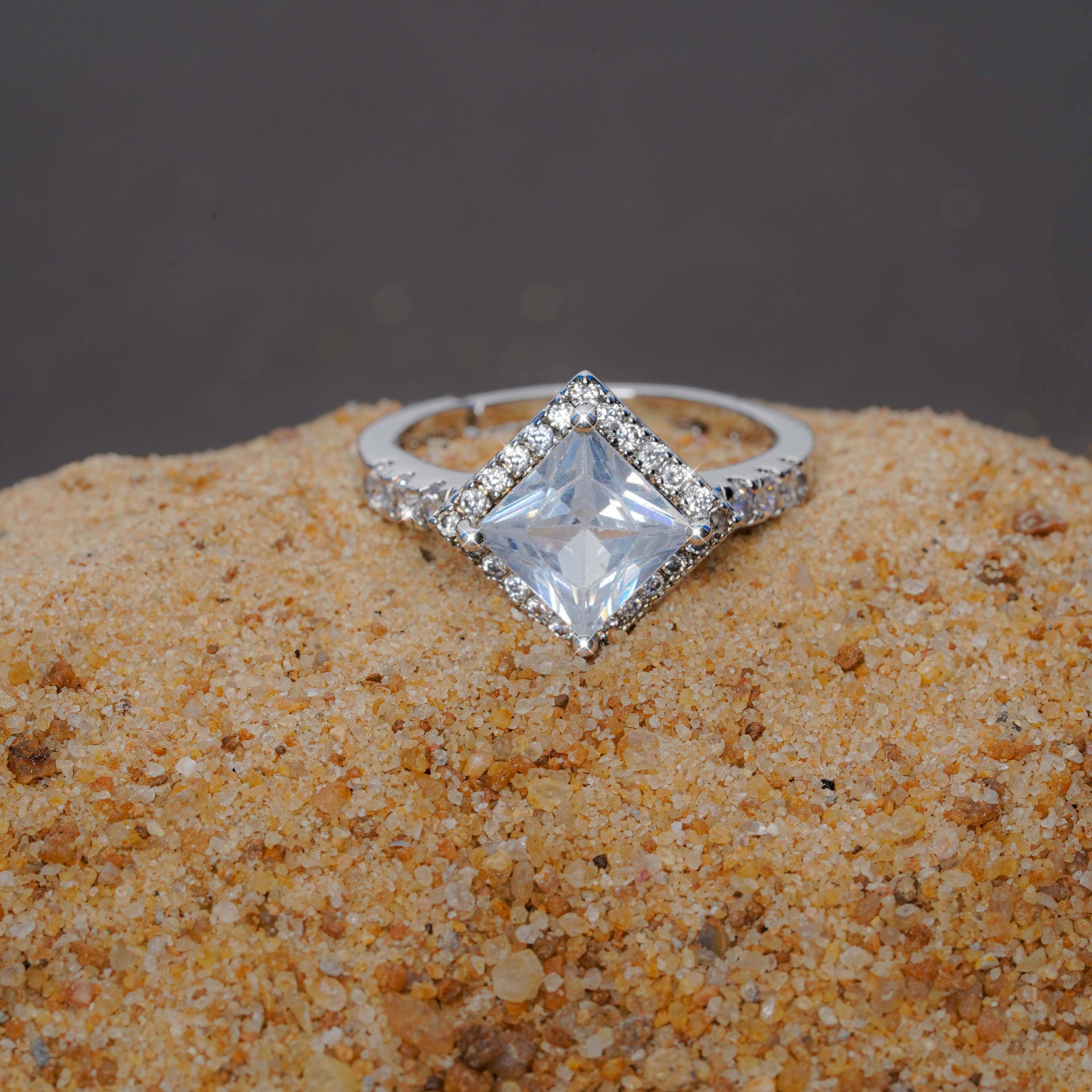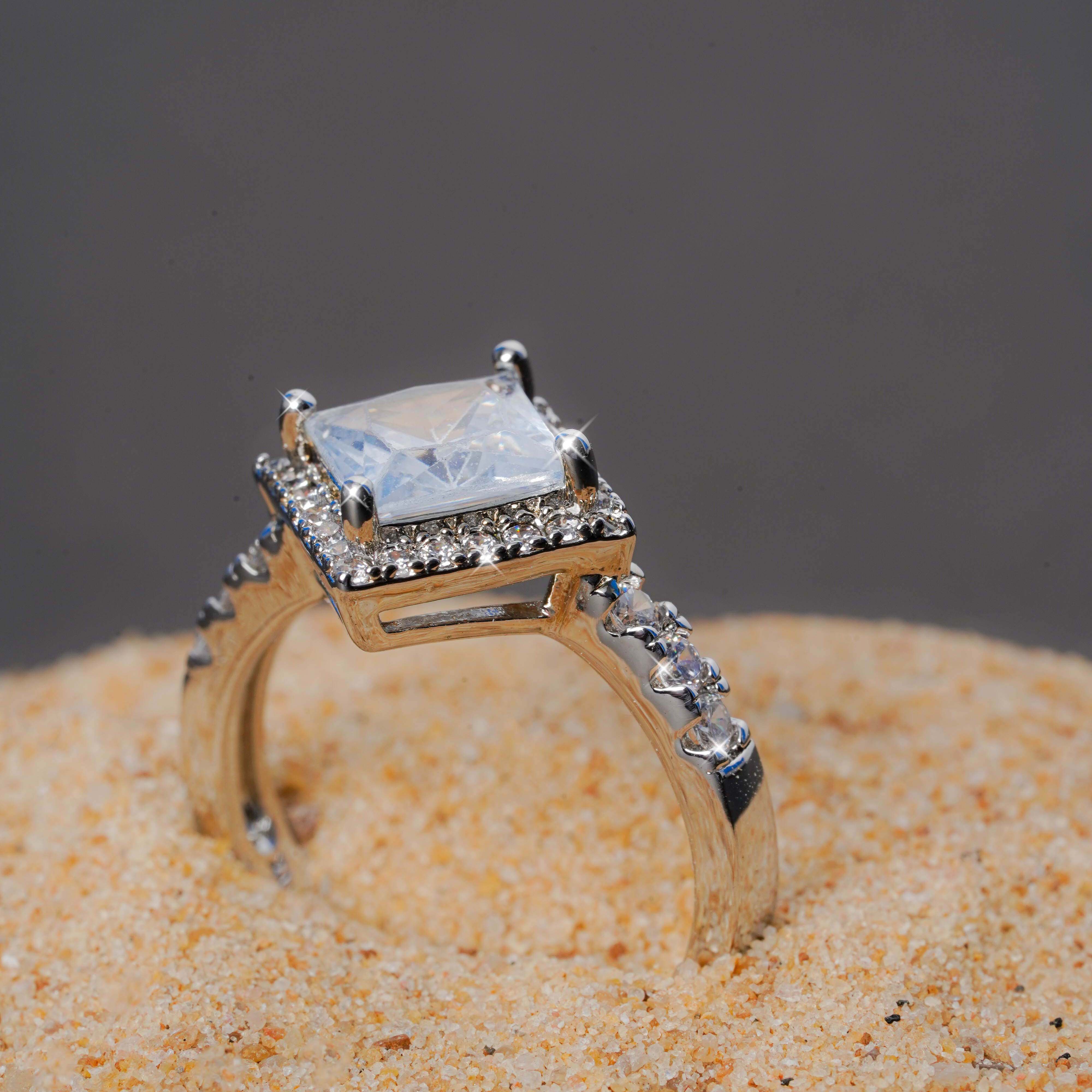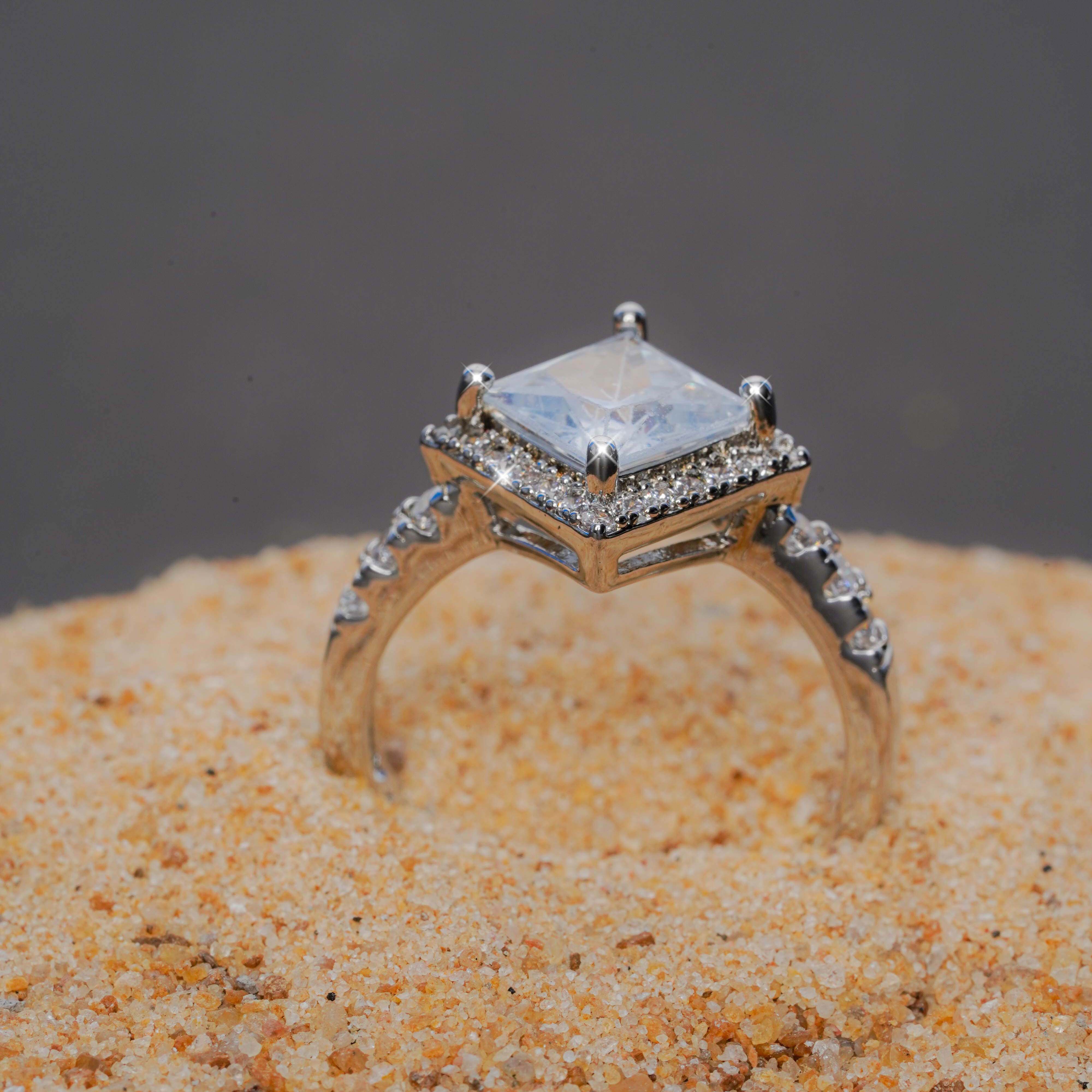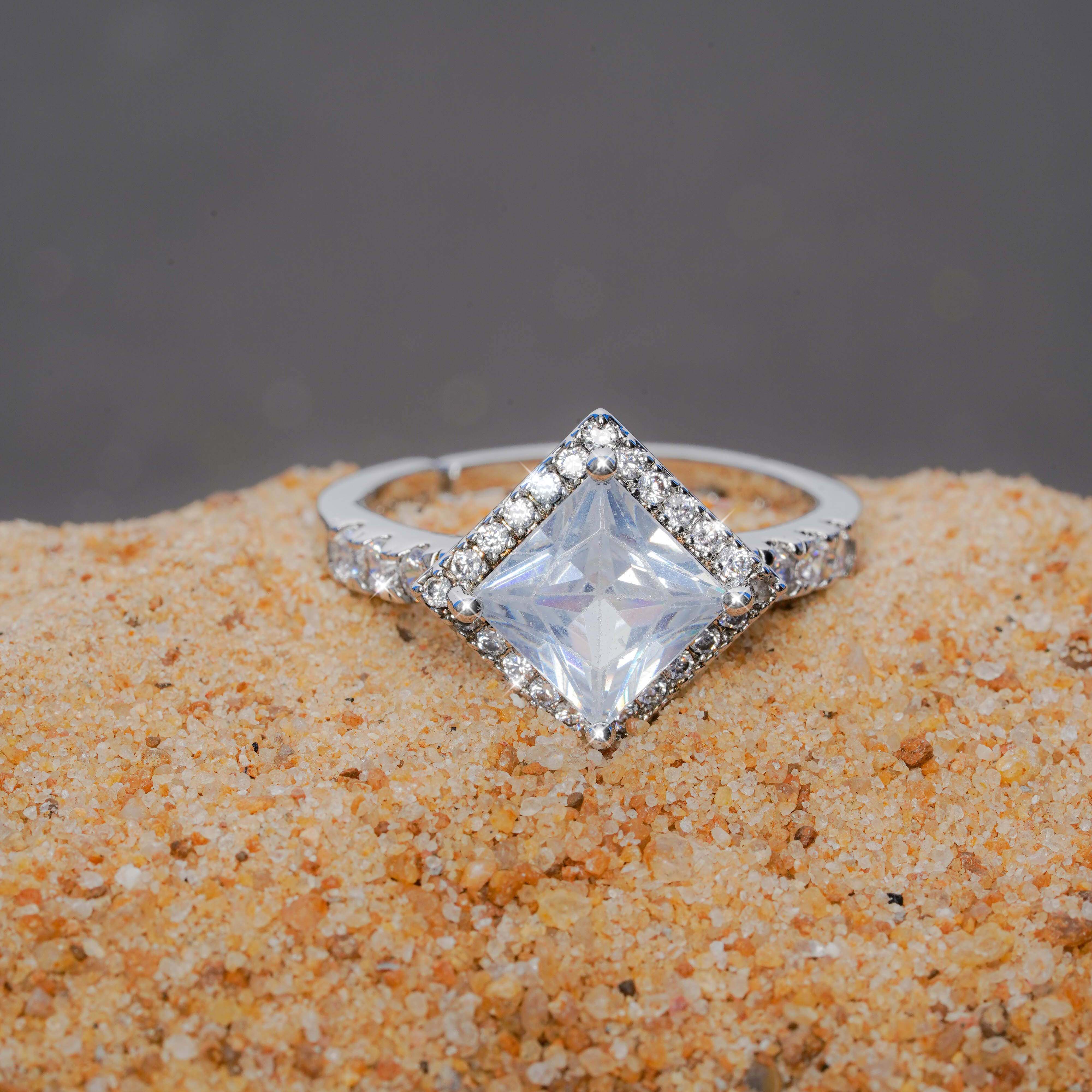 Main Stone: A stunning princess-cut White gemstone, symbolizing prosperity, optimism, and warmth.