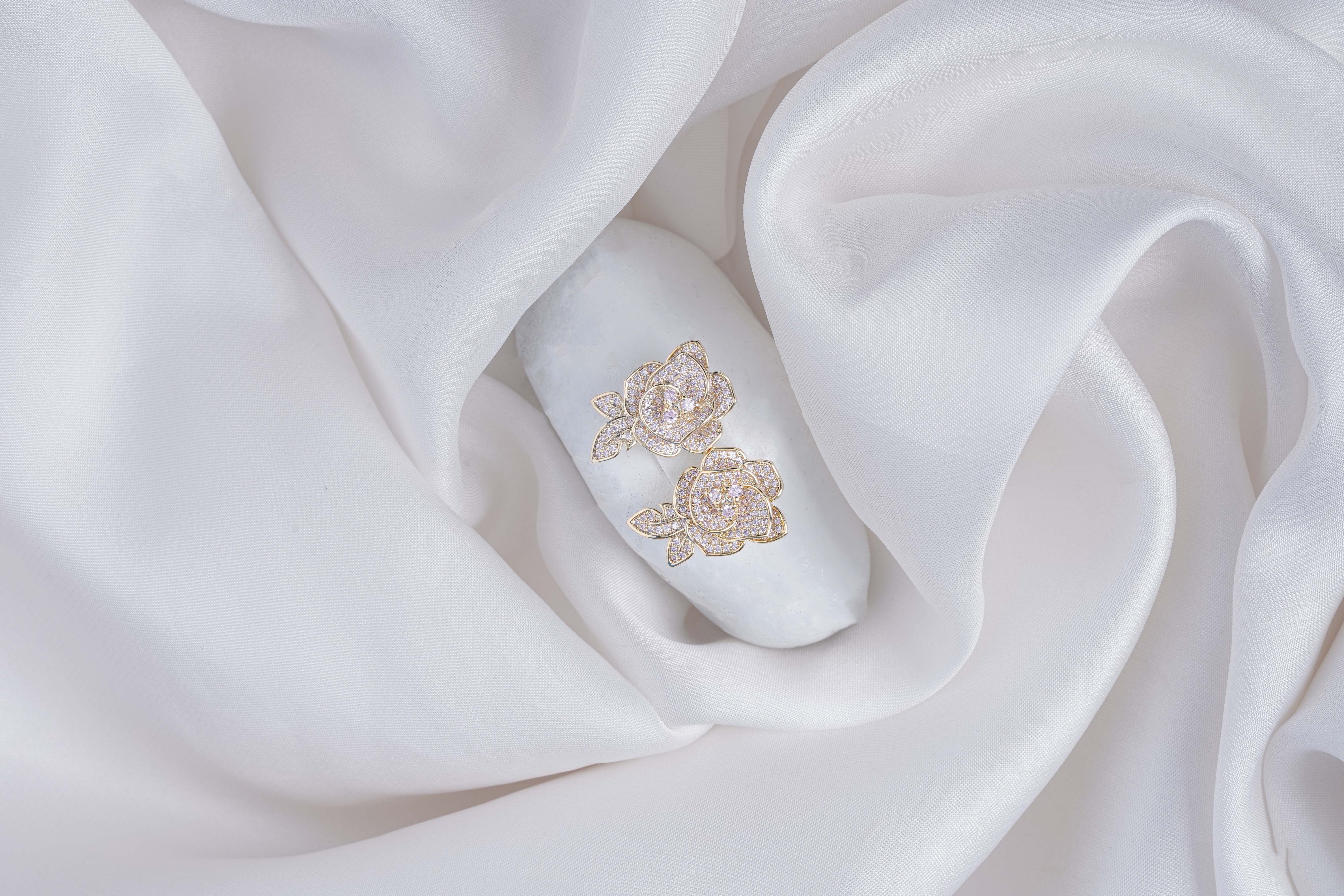Embrace elegance with our White Rose Earrings, a dazzling ode to timeless femininity. Shaped like delicate roses in full bloom, these earrings shimmer with intricately set crystals that capture every glint of light.
